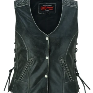 DM986 Women’s Advance Side Laces Black Construction Denim Vest