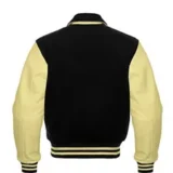 Men Black Wool & Cream Real Leather Varsity Jacket