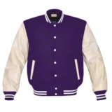Men Purple Wool & Cream Real Leather Varsity Jacket