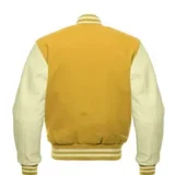 Men Yellow Wool & Cream Real Leather Varsity Jacket