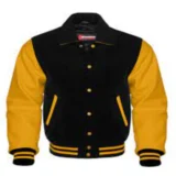 Men’s Black Wool & Gold Real Leather Collar Varsity Jacket