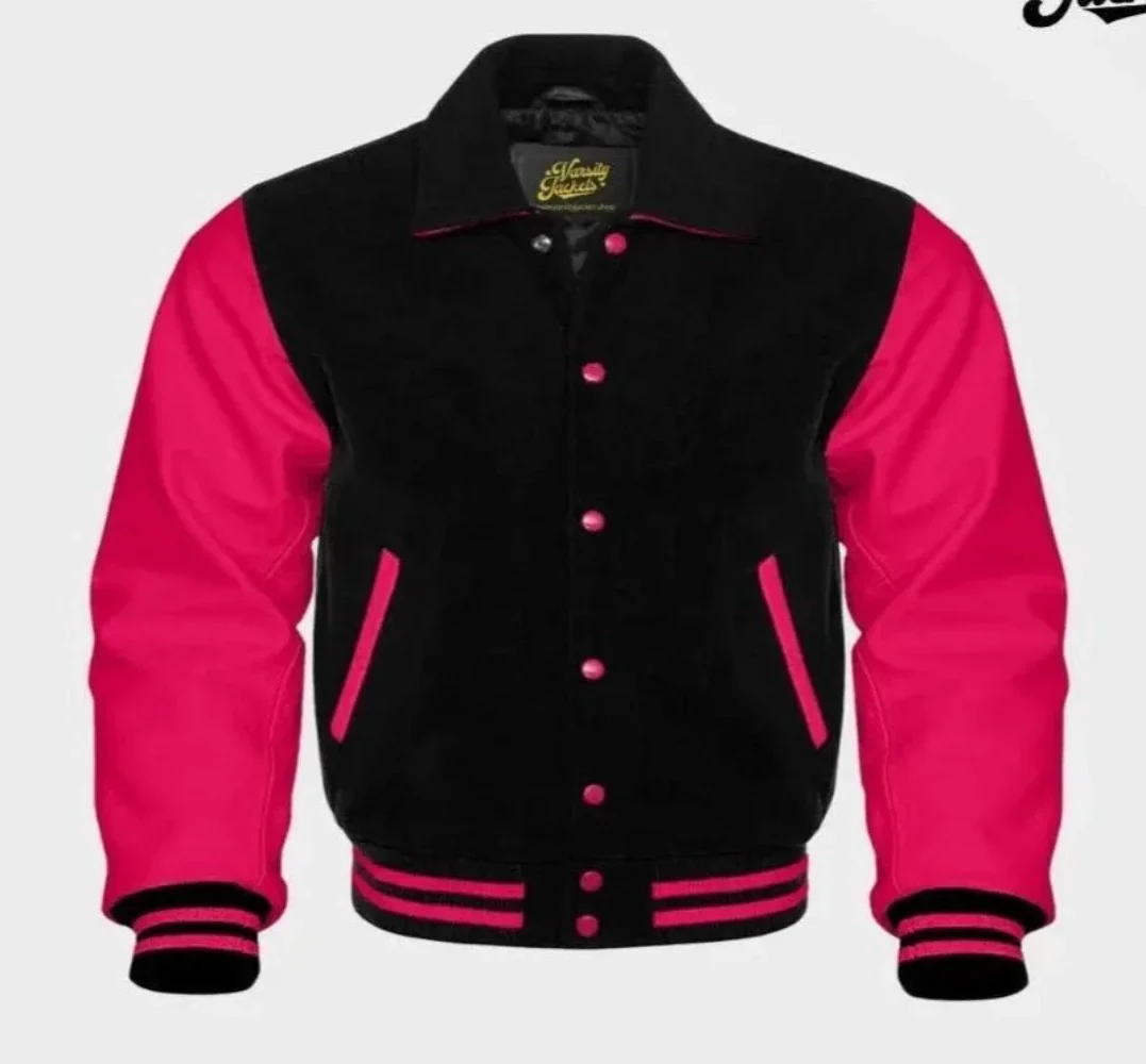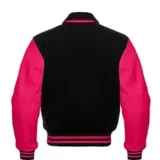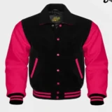 Men’s Black Wool & Pink Real Leather Collar Varsity Jacket