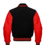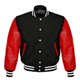 Men’s Black Wool & Red Real Leather Collar Varsity Jacket