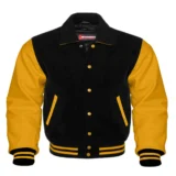 Men’s Black Wool & Yellow Real Leather Collar Varsity Jacket