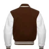 Men’s Brown Wool & White Real Leather Collar Varsity Jacket