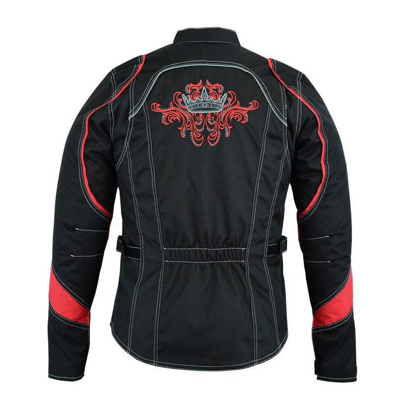 DS826RD Women’s Embroidered Crown Riding Jacket – Red