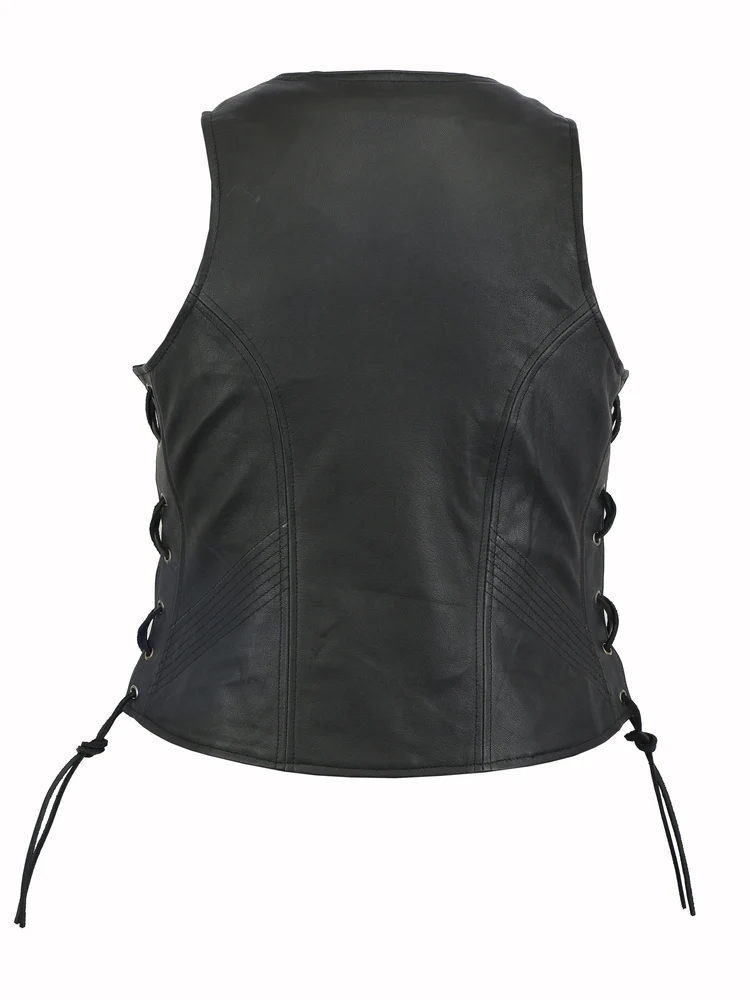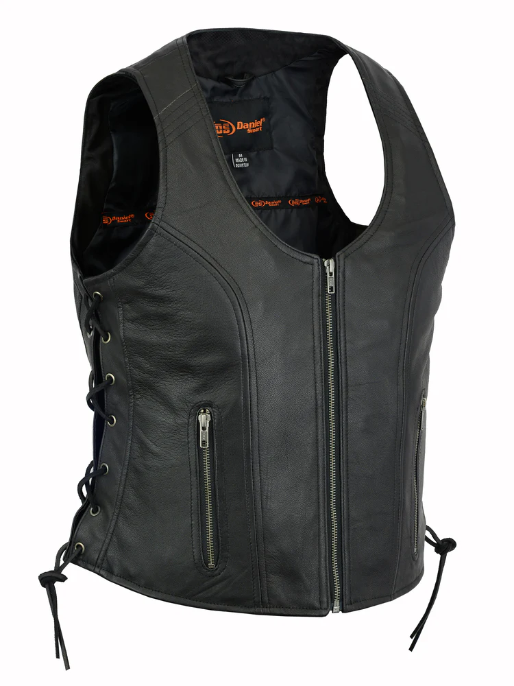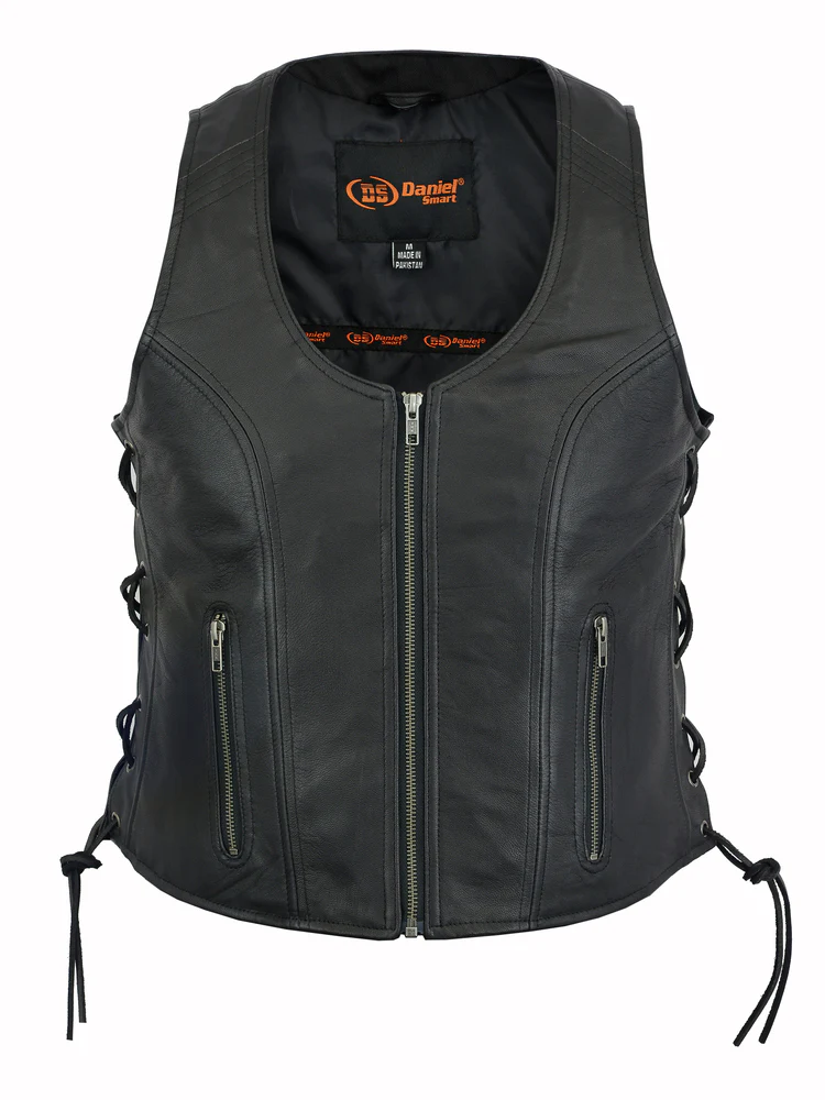 DS245 Women’s Stylish Open Neck Side Lace Zipper Front Vest
