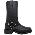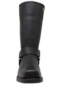 This 12"" black heavy duty full grain oiled leather upper harness boot features neophrene oil-resistant sole and heel, a square soft toe, and cushion insole. It also has o-ring ankle harness strap with goodyear construction.