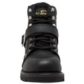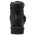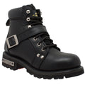 Women's 6 inch black biker boot built for comfort, durability, and traction control. Extra heavy duty traction sole for added protection and style. This boot has Goodyear Welt construction with top quality Full-Grain oiled leather, lace up design with buckle strap, and YKK zipper.