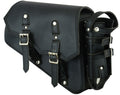 Right Side Synthetic Leather Swing Arm Bag W/Bottle Holder, Gun and Ammo holster.