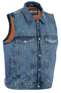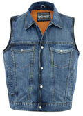 DM979BU Snap/Zipper Front Denim Vest- Blue