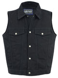 DM979BK Snap/Zipper Front Denim Vest- Black