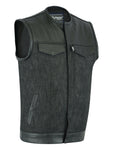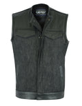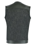 DM901 Men's Leather/Denim Combo Vest Without Collar