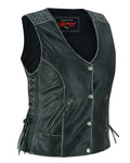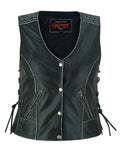 DS285V Women's Gray Vest with Grommet and Lacing Accents