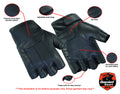 Women's tough fingerless glove made in premium drum-dyed Deerskin leather. Featuring gel palm for long haul comfort, extended palm pull-tabs allow for easy removal, and an adjustable wrist strap.