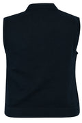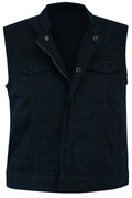 Our women's all-black denim leather biker vest with a cellphone pocket will quickly become your favorite piece of clothing to wear on a ride. Sturdy and durable yet also attractive, the vest can travel with you on countless adventures without showing wear and tear. The front zipper is hidden under snap-placket blocks to block wind and rain.