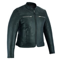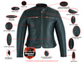 Functional perforated action back with stretch panel in liner arms for comfort while riding.