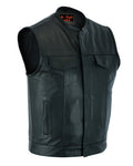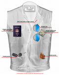 Our men's cowhide leather single panel concealment motorcycle vest includes: