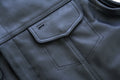 This style is made from soft, promo cowhide leather 1.2 - 1.3mm and has snap closures that cover the hidden zipper, so you get the look of snaps with a secure closure. The hidden zipper helps the vest block out rain and wind on the road.