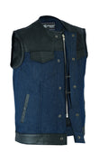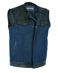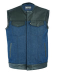 DM933 Men's Leather/Denim Combo Vest (Black/Broken Blue)