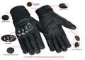 Textile and leather glove made with premium grade durable Aniline goat featuring hard knuckles, touch screen finger tips and adjustable wrist strap.