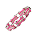 Two Tone Silver and Pink Ladies Bike Chain Bracelet with White Crystal Centers