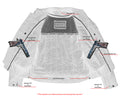 Action back with stretch panel in liner arms for comfort while riding.