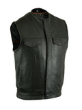 Your leather vest should keep you safe and make you look your best. Our men's cowhide single panel concealment vest without a collar is a sleek, versatile piece of gear. This leather vest is made from soft, milled cowhide 1.2-1.3mm for comfort and durability.