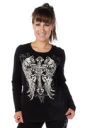 A bold & blinged out Celtic cross design on our basic long sleeve v-neck