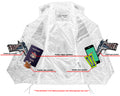 Built in dual side concealed gun pockets with built-in holsters and snap closure.