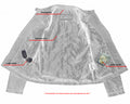 Silver red dyed zipper.