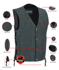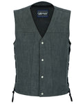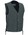 DM918 Men's Rough Rub-Off Raw Finish Broken Gray Denim Vest