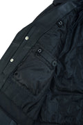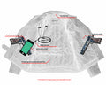 2 inside concealed gun pockets made of special heavy-duty textile with built-in holsters and snap closure.