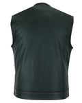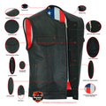 DS155 Men's Leather Vest with Red Stitching and USA Inside Flag Linin