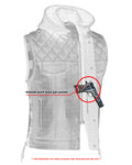 2 upgraded style concealed gun pockets between the snap and the zipper made of special heavy-duty textile with built-in holsters and snap closure.