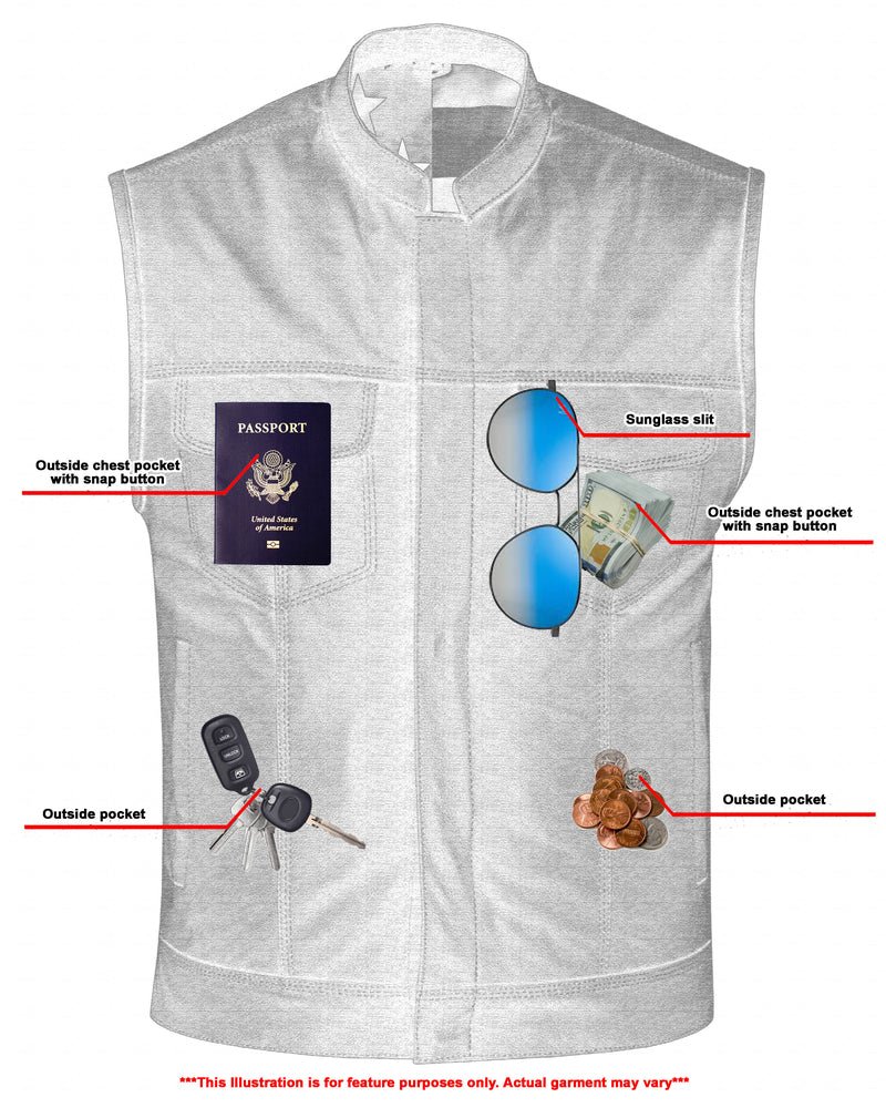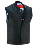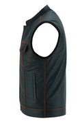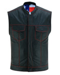 DS165 MEN'S LEATHER VEST WITH RED STITCHING AND USA INSIDE FLAG LININ