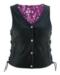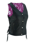 2 inside concealed gun pockets made of special heavy-duty textile with built-in holsters and snap closure.
