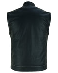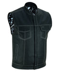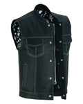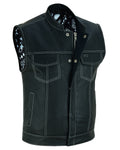 DS164 Men's Paisley Black Leather Motorcycle Vest with White Stitchin