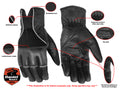 Leather/mesh combo. Gel palm breathable liner with reflective piping outline. Reinforced padding on thumb and forefinger. Great for summer riding.