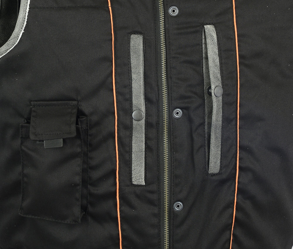 Order your men's single panel concealment motorcycle vest without a collar from Daniel Smart Manufacturing.