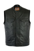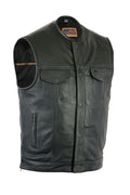 Leather vests offer mobility and security for those who carry guns on the road. Our men's gun pocket vest with bottom side zippers is perfect for bikers who want to conceal carry on or off their bike. Our vests are made of soft, premium drum-dyed milled naked cowhide 1.2 - 1.3mm for comfort and durability.