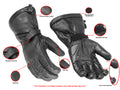Men's waterproof gauntlet glove featuring high performance insulated liner for extra warmth with rain viper on thumb, reflective piping, touch screen finger tips and adjustable wrist strap. Made in premium Deerskin Leather.