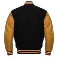 Men Black Wool & Gold Real Leather Varsity Jacket