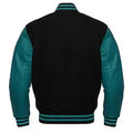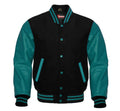 Men Black Wool & Teal Real Leather Varsity Jacket