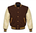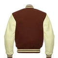 Men Brown Wool & Cream Real Leather Varsity Jacket