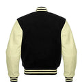 Men Dark Gray Wool & Cream Real Leather Varsity Jacket