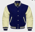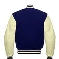 Men Navy Blue Wool & Cream Real Leather Varsity Jacket
