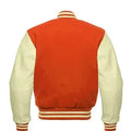 Men Orange Wool & Cream Real Leather Varsity Jacket