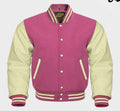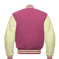 Men Pink Wool & Cream Real Leather Varsity Jacket