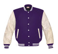 Men Purple Wool & Cream Real Leather Varsity Jacket